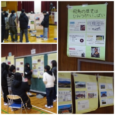 1年生が2年生を招待して「ならの魅力」をポスターセッションで紹介しました。2学期から全部で25時間ほど時間をかけて学習してきた集大成です。1人1人自分の作成したポスターを使用して、自分の言葉で発表しました。準備中は1人で発表することに抵抗を感じていましたが、発表中は生き生きとしている姿がたくさんありました。最後に2年生へインタビューもしました。「クイズなど工夫があって面白かったです」「自分たちも昨年行った明日香村ですが、知らないこともあって、もう一度行きたいと思いました。」といった感想をもらいました。1人1人の学習の成果を他の人に伝える大切な機会となりました。このブログを検索